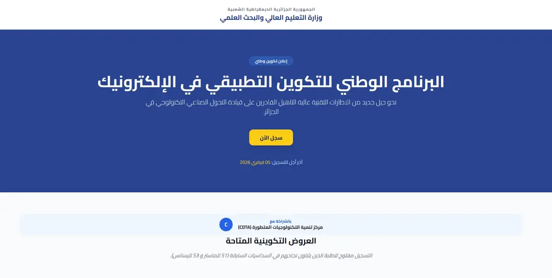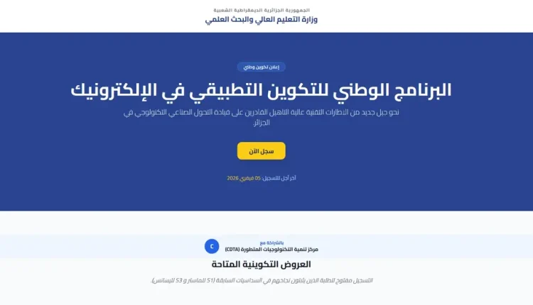 وأشار البيان إلى أن التخصصات المفتوحة في برنامج “الليسانس-الوطني” هي “إلكترونيات التجهيزات الصناعية وإلكترونيات المنشآت الصناعية”، بحيث سيكون التكوين بجامعة البليدة 1 بالتعاون مع مركز تنمية التكنولوجيات المتطورة.